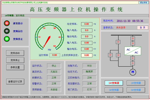 本地控制就是可由變頻器柜門上的按鈕或者人機(jī)界面“運(yùn)行狀態(tài)”窗口中的“變頻啟動(dòng)”/“變頻停止”按鈕進(jìn)行操作。