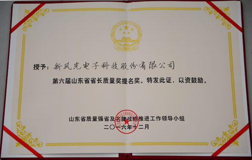 山東省5家企業(yè)和4名個人獲得第六屆山東省省長質量獎,新風光電子科技股份有限公司等9家企業(yè)和3名個人獲得第六屆山東省省長質量獎提名獎。
