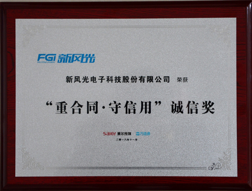 新風(fēng)光公司以其行業(yè)影響力榮獲賽爾傳媒“電氣行業(yè)影響力品牌獎”,又以多年堅持誠信建設(shè)榮獲“重合同?守信用”誠信獎。