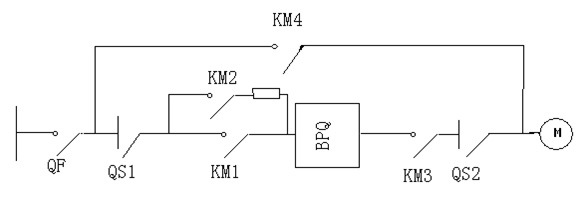 變頻器配備了自動旁路柜,通過KM3、KM4的控制,可自動(或手動)在變頻狀態(tài)和工頻狀態(tài)之間切換。變頻狀態(tài)下, KM3閉合,KM4斷開,變頻器控制電機;工頻狀態(tài)下,KM3斷開,KM4閉合,在切換至工頻帶動電機。變頻器可以在重故障時自動切換工頻運行,這樣既保證了變頻器正常運行,又避免了直接啟動電機大電流對電網(wǎng)的沖擊。
