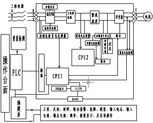(8)變頻器具有封鎖輸出功能,下放時(shí)也可使吊鉤快速自由落體。