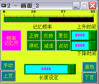 點(diǎn)動(dòng):通過(guò)正反按鈕來(lái)定方向,按住此按鈕,變頻器頻率開始上升,松開按鈕,頻率下降至最低頻率0.5Hz.。