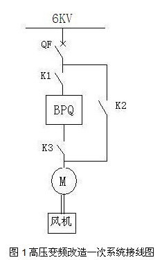 改造前:原系統(tǒng)6kV高壓開關(guān)柜至電機,電機與風(fēng)機直接連接,通過風(fēng)門擋板的開度來調(diào)節(jié)流量。