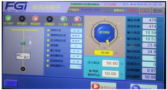 (2)高壓變頻電源的運(yùn)行參數(shù)及各種指示在觸摸屏均有顯示。