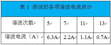 表1 測試的各項(xiàng)諧波電流統(tǒng)計