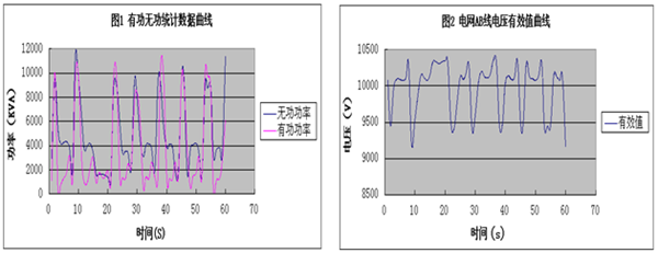 通過使用山東新風(fēng)光電子科技發(fā)展有限公司生產(chǎn)的FGSVG系列高壓動態(tài)無功補償裝置,軋鋼廠現(xiàn)場電網(wǎng)側(cè)母線在一周內(nèi)功率因數(shù)超過0.95,在軋鋼機運行時電網(wǎng)電壓有效值波動基本低于400V,極大地抑制了電壓閃變的現(xiàn)象,減少了公司設(shè)備的故障率,提高了軋鋼機的運行效率。同時FGSVG產(chǎn)品體積小,運行穩(wěn)定,操作方便,自身功率損耗低。為使用單位帶來了可觀的經(jīng)濟效益。
