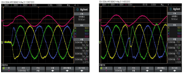 SVG運行時無功功率迅速切換響應(yīng)速度檢測波形: